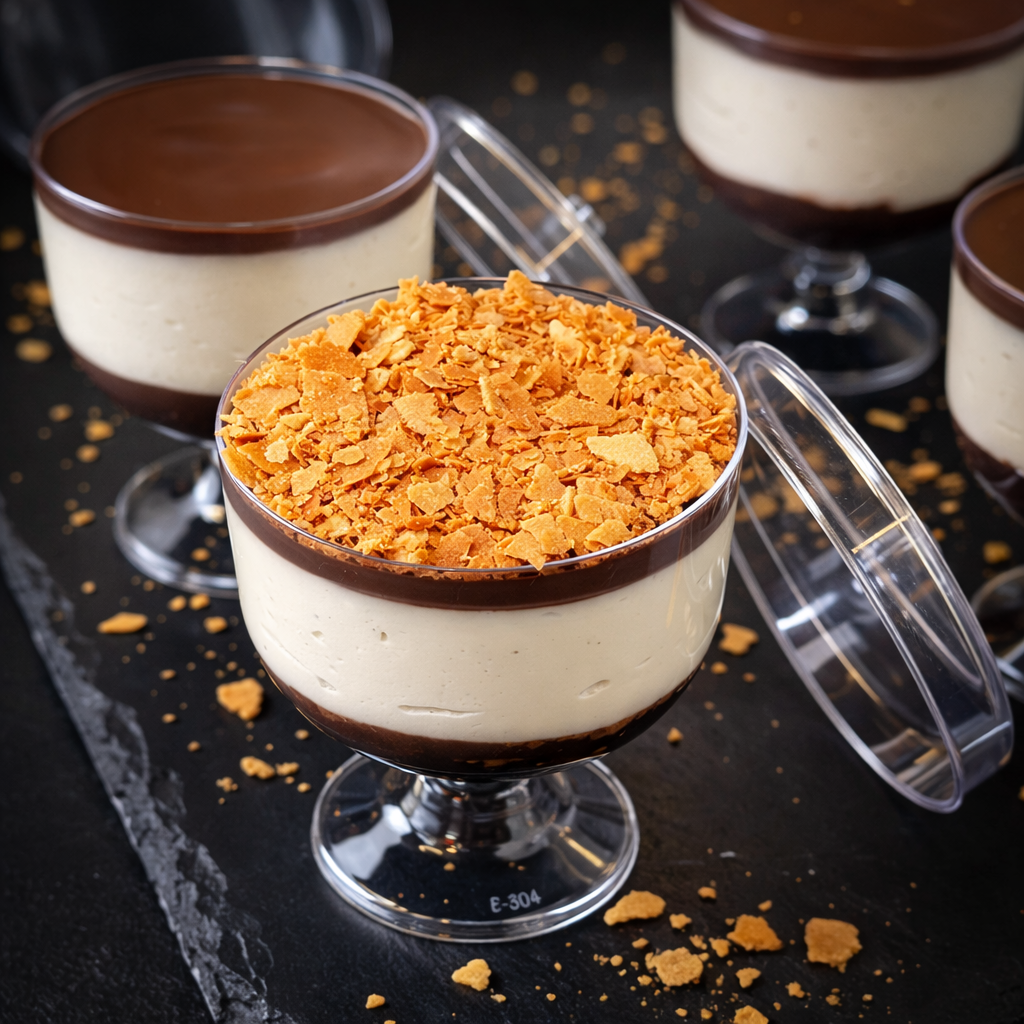 لمن يشتهون المزيج المثالي من الكريمة والمقرمشة - جبنة كريمية غنية وكريمة ناعمة، مع طبقات من كعكة الشوكولاتة الداكنة الرطبة، وقرمشة لذيذة. متعتكم لا تُضاهى!